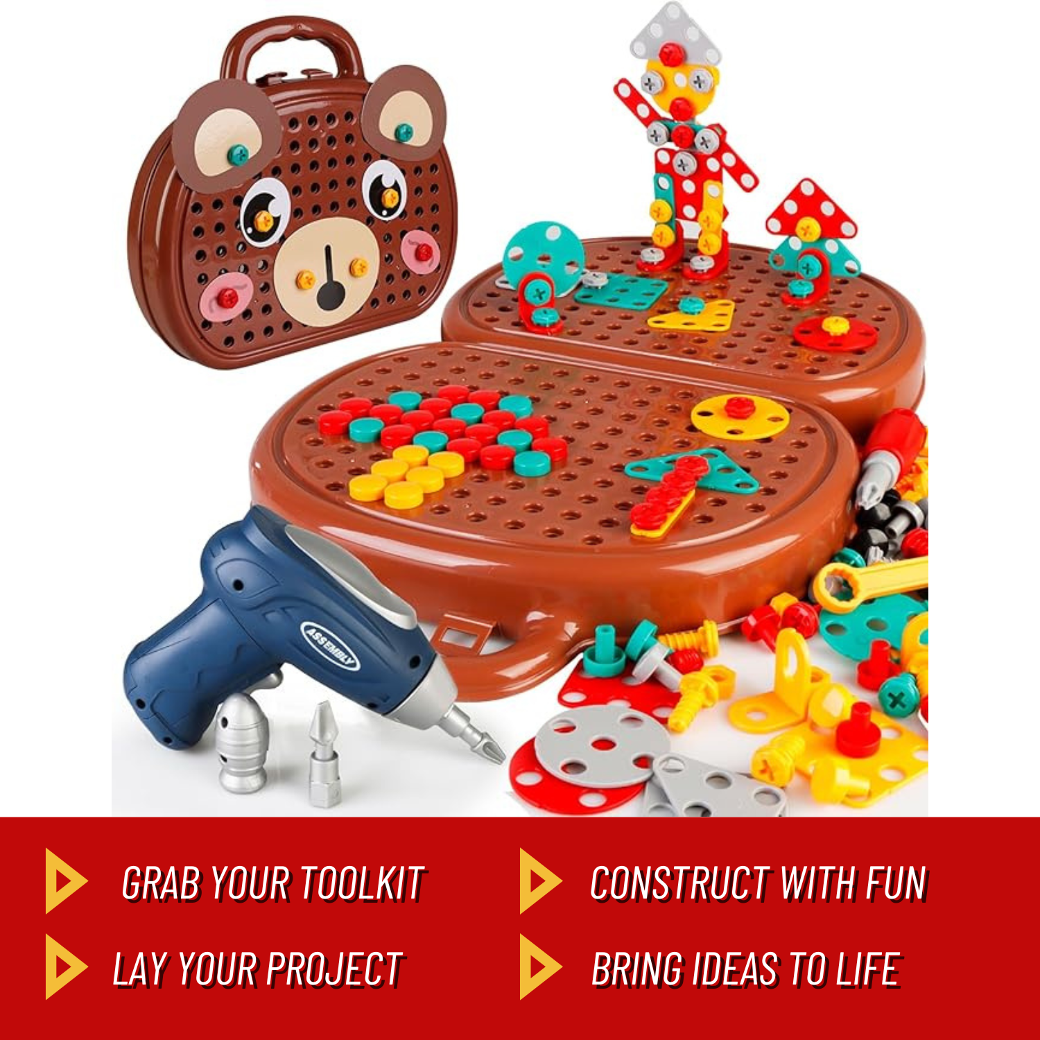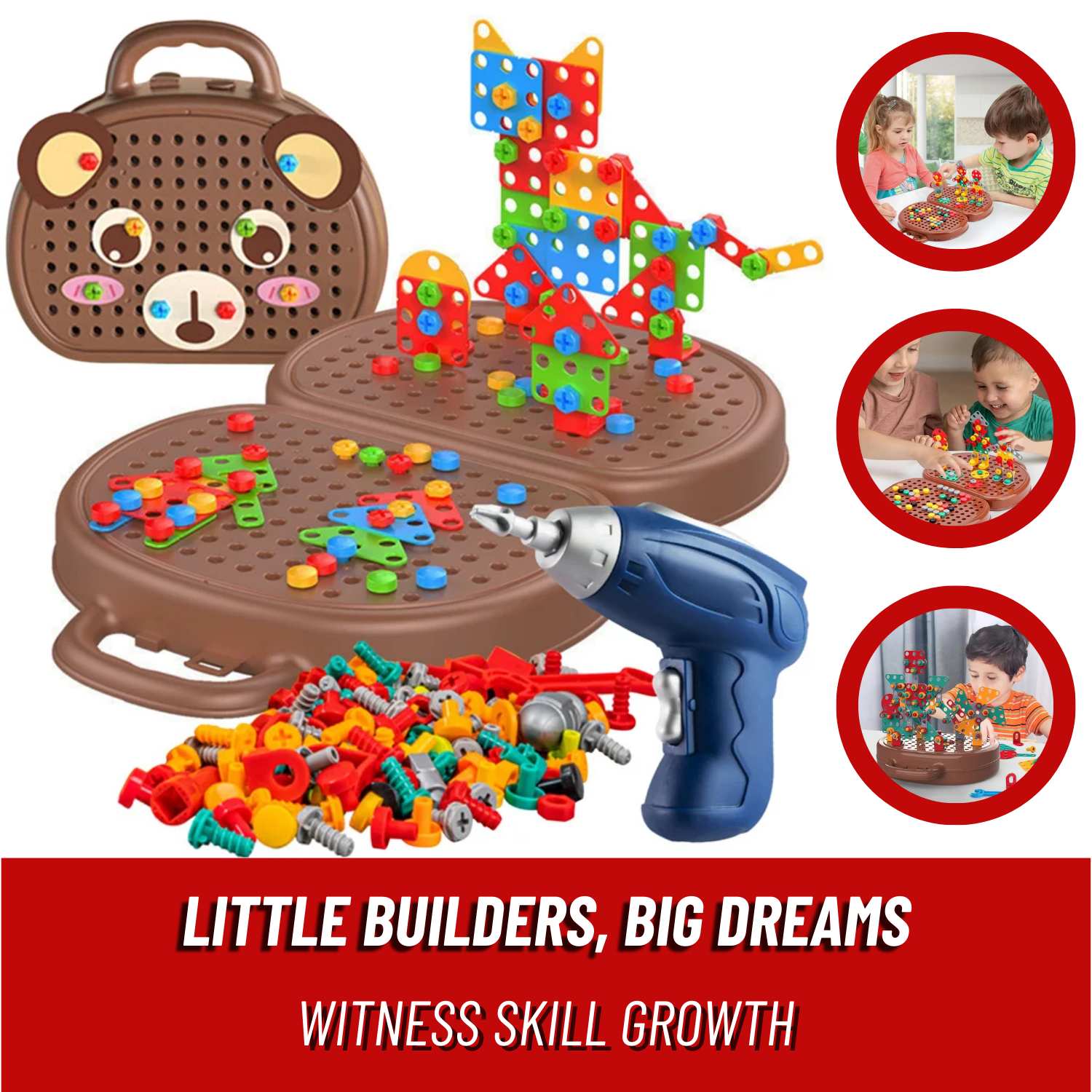 Perfect for young minds aged 3 and up, this Montessori-inspired toolbox ignites imagination and practical skills. With an easy-to-use electric drill and various accessories, kids can dive into a world of construction. They'll enhance motor skills, engage in imaginative play, and develop cognitively while having fun. It's more than a toy; it's a foundation for lifelong learning and creativity. Let your child start their journey ahead of the pack with BuildWise™!