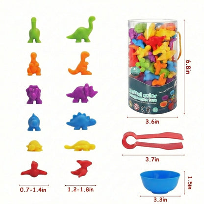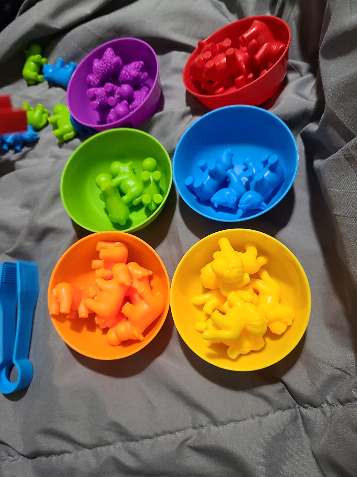 Featuring 36 pieces of colorful animal counters, 2 tweezers and 6 matching cups.