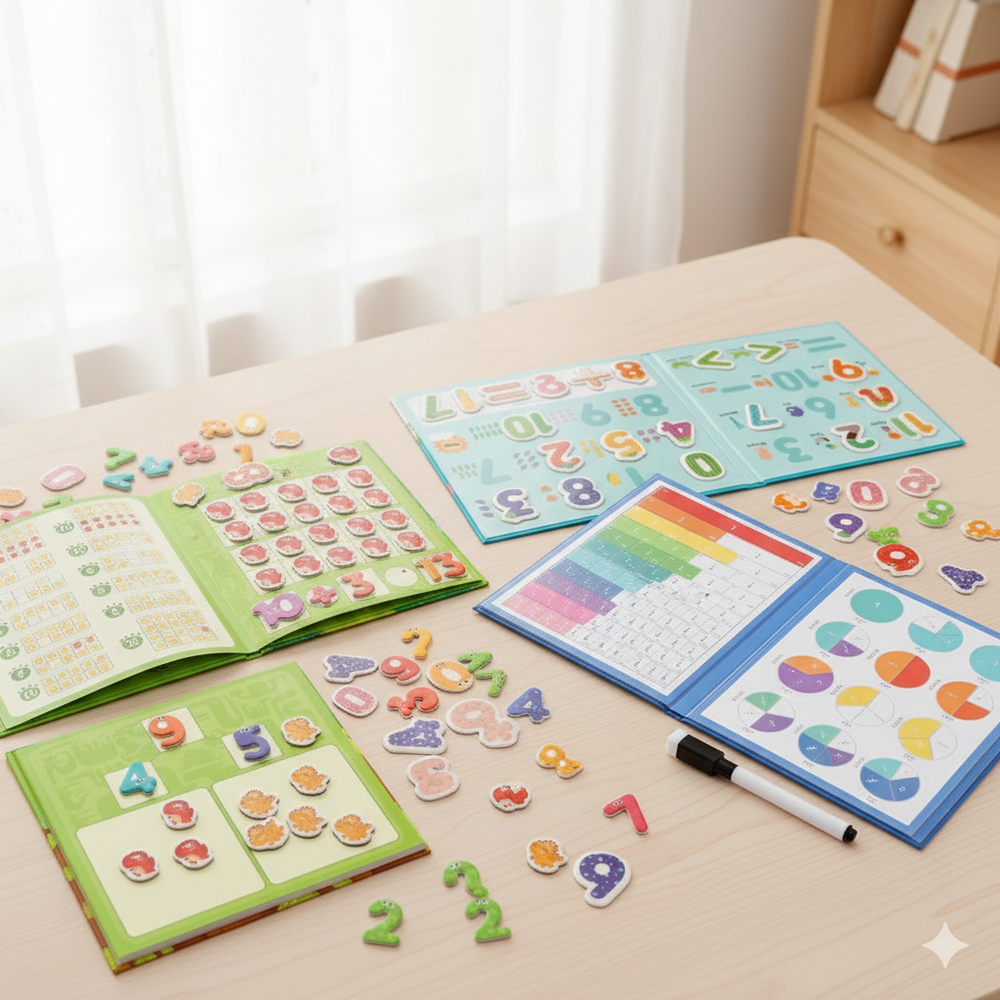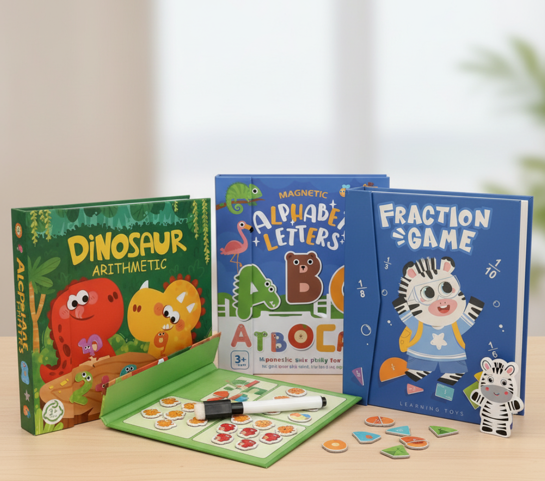 Crafted with eco-friendly materials, the EduFun Puzzles™ set includes magnetic letters and math manipulatives for interactive learning.
