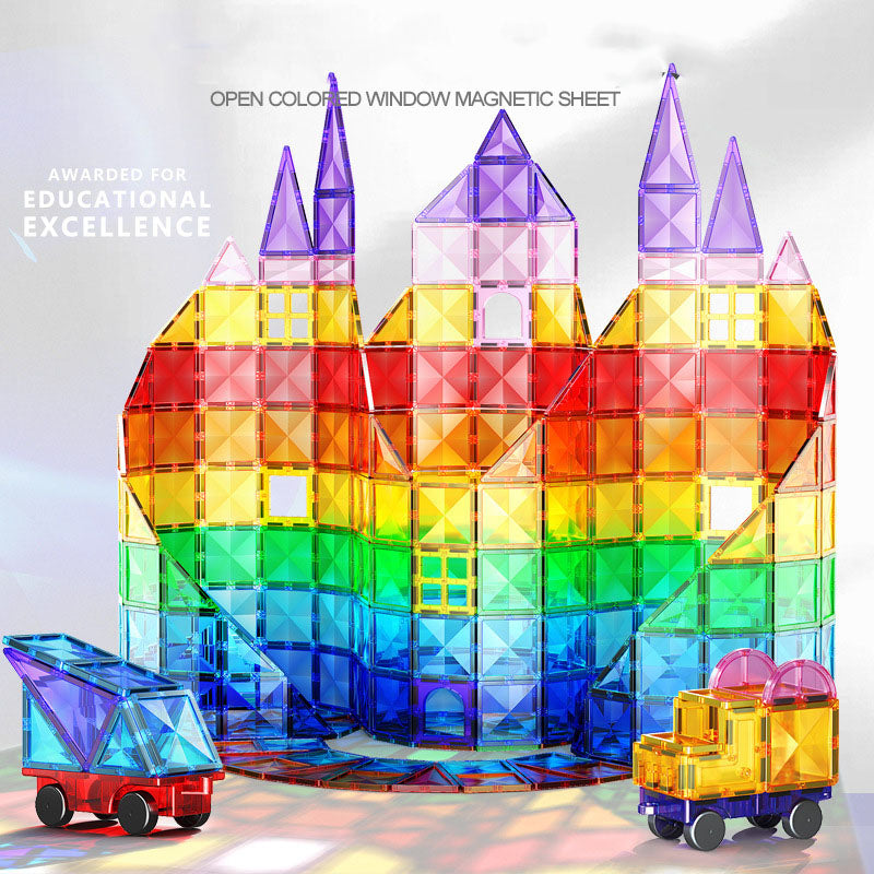 Made of ABS plastic, our magnetic tiles are durable, colorful, and designed for ages 3-14.