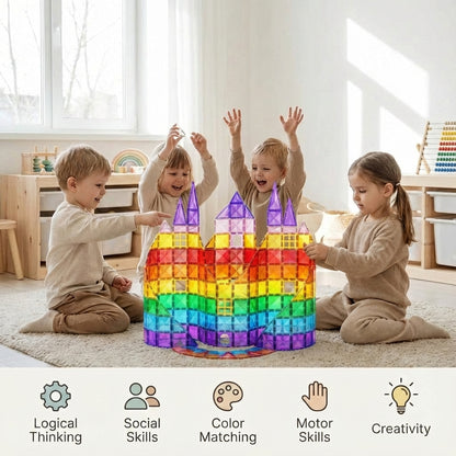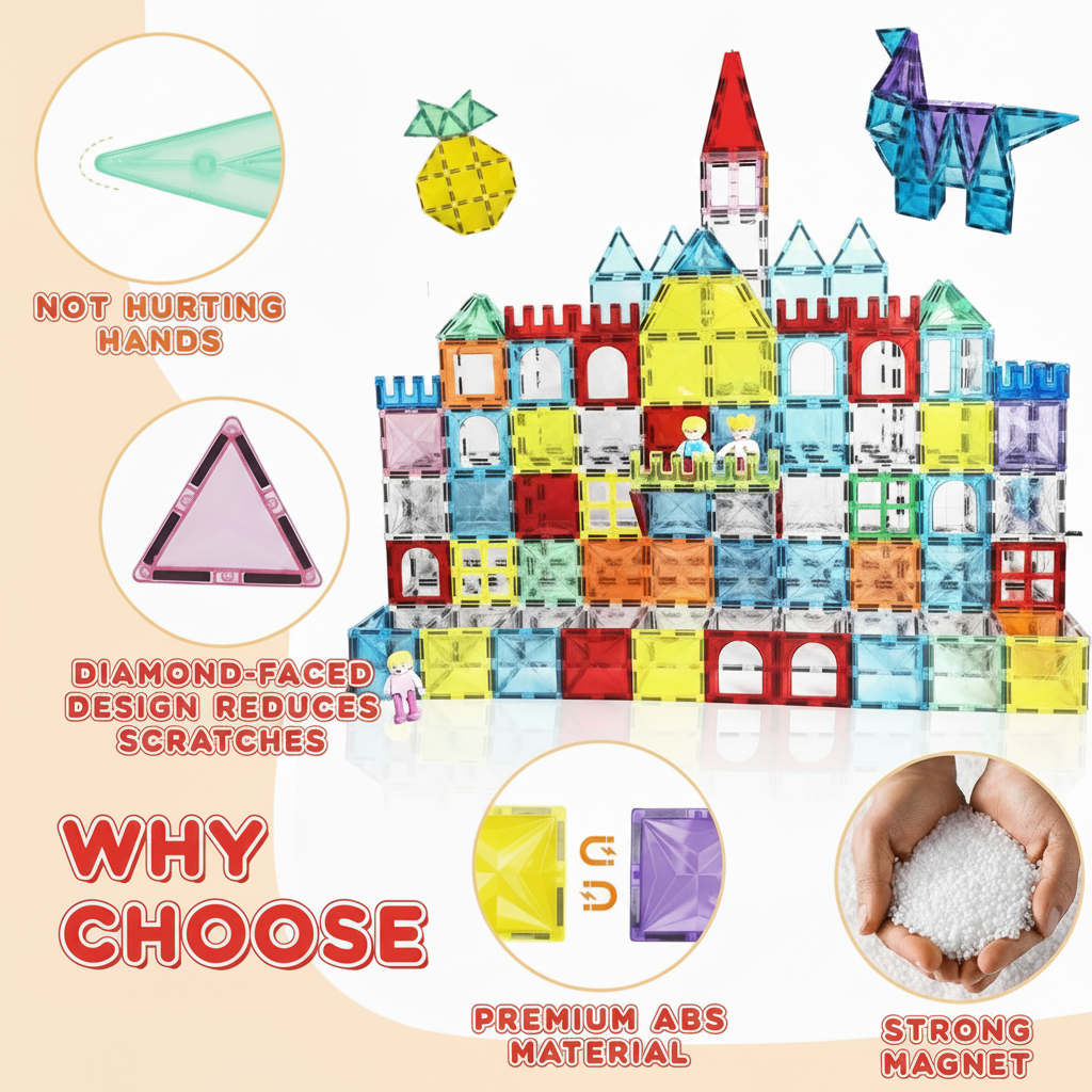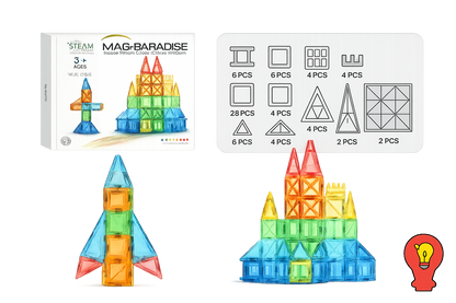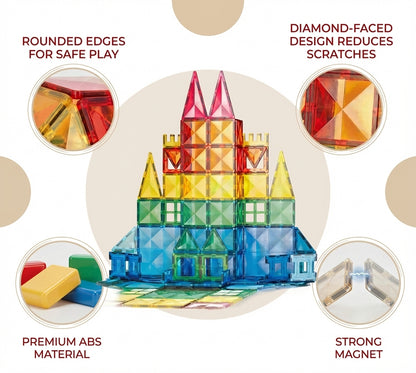 Our durable, ultrasonic-welded tiles are designed with powerful magnets that hold structures in place, promoting confident building. Your little ones can construct elaborate designs without worrying about stability, making playtime exciting and worry-free!