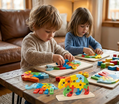 The Montessori NumberPlay™ Interlocking Wooden Puzzle Set is designed to ignite your child's love for learning. With bright colors, engaging animal designs, and durable wooden pieces, this puzzle not only entertains but also educates! It's the perfect tool for building cognitive skills, problem-solving, and hand-eye coordination while keeping your little ones entertained for hours. Perfect for ages 3-12; let the learning adventures begin!