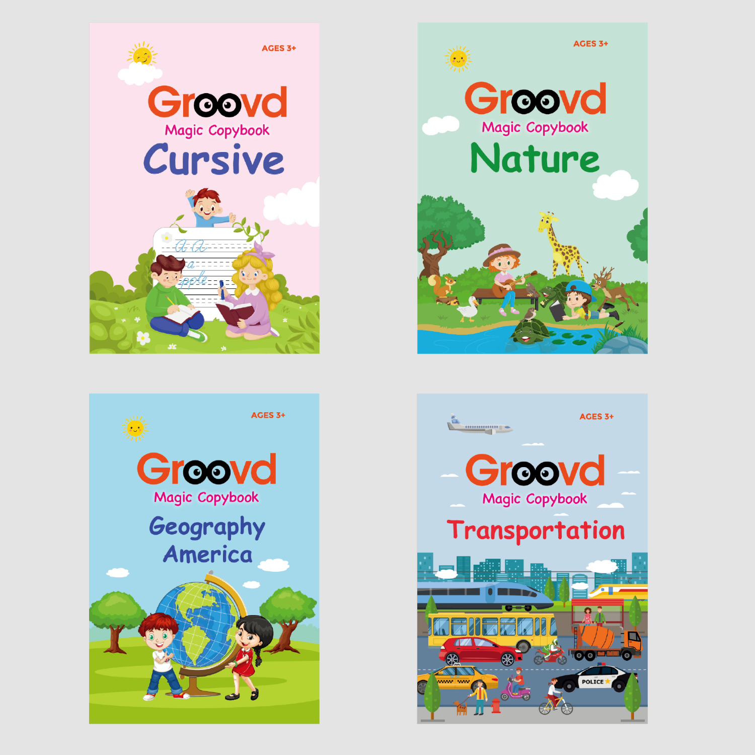 With the new 2024 Groovd™️ Magic Copybooks, your child will master cursive writing, explore America's geography, discover fascinating animals in nature, and learn about various transportation methods—all while enhancing their handwriting and motor skills.