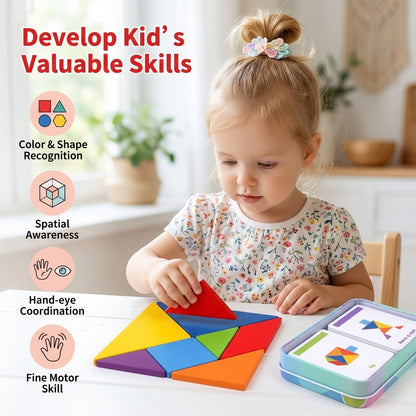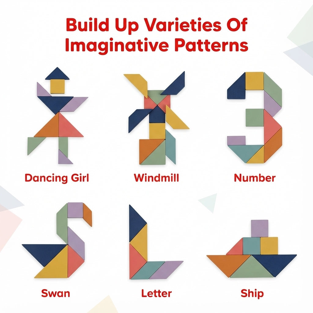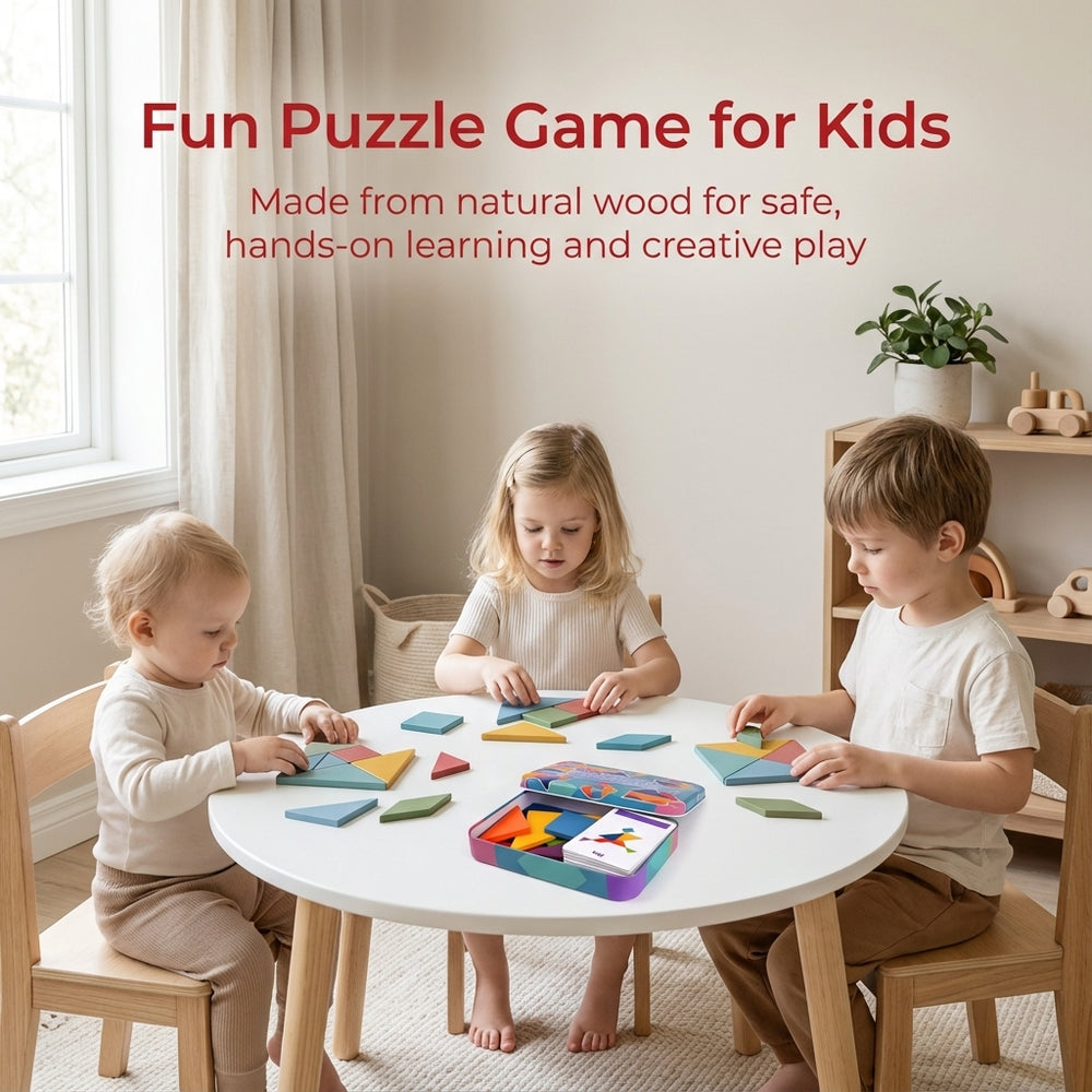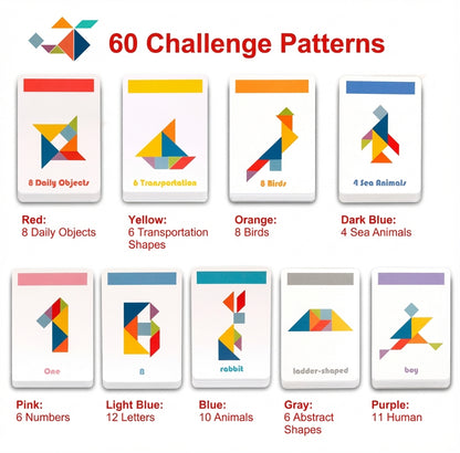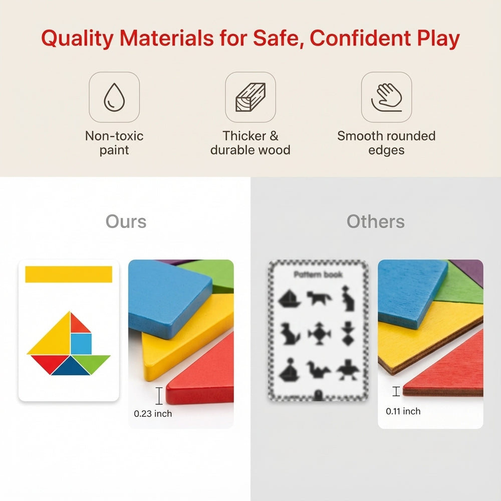 Crafted from durable hardwood, our tangram puzzle is designed to last. Each piece is precision-cut for a smooth, enjoyable experience. Parents can rest easy knowing their kids are playing with a safe and high-quality product that won't harm fragile hands.