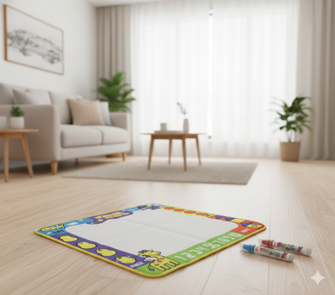 Measuring 80 x 60 cm, AquaDoodle™ fits perfectly in any room or outdoor space. Whether it's for a play date, family gatherings, or solo creative time, this mat is designed for easy storage and portability. Ideal for both indoor and outdoor fun, making it the go-to educational toy during travel or at home!