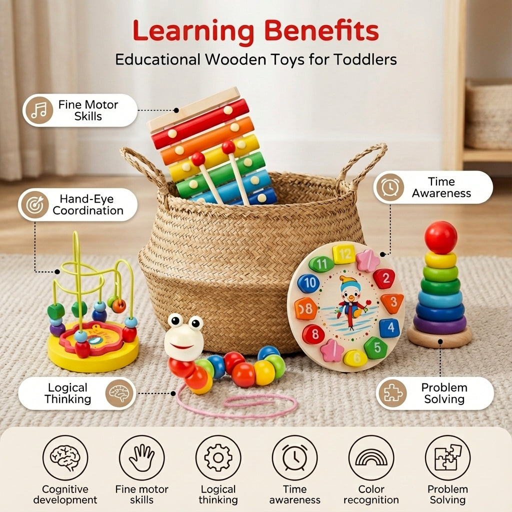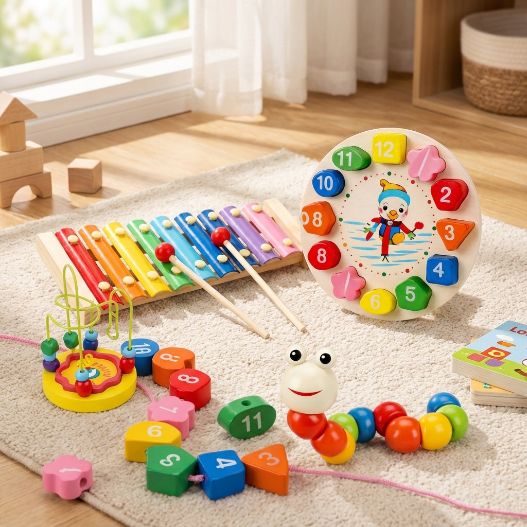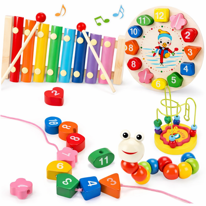 Our Montessori Wooden Learning Toy Set is made from premium-quality, non-toxic wood, ensuring safety and durability for little hands.