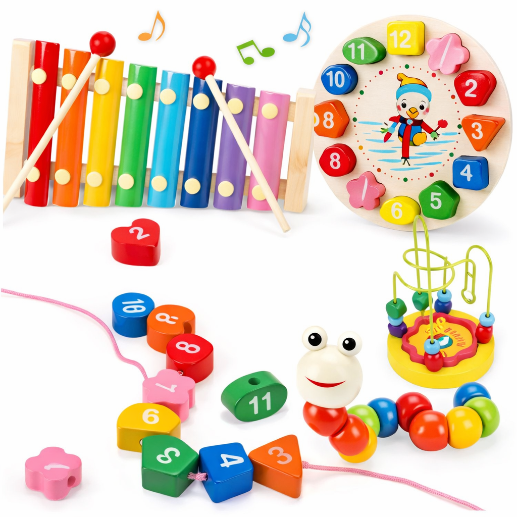 This 5-in-1 Montessori toy set is designed to keep kids engaged while learning important skills. It includes sorting and stacking toys, a bead maze roller coaster, and a xylophone to provide a varied and enriching educational experience. Each activity targets different developmental areas, ensuring your child grows while having fun!