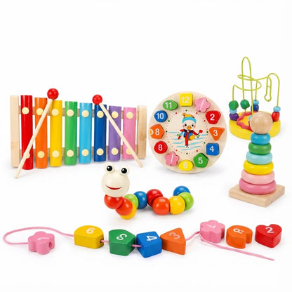 The Montessori Wooden Learning Toy Set is specially designed to stimulate cognitive development and motor skills in toddlers. With engaging activities like sorting, stacking, and a musical xylophone, it offers endless opportunities for play and learning. Crafted from high-quality wood, each piece is both safe and durable, ensuring countless hours of imaginative exploration. Ideal for children aged 12 months to 7 years, this toy set is perfect for at-home learning or classroom use. Surprise a child in your life with a gift that inspires creativity and curiosity!